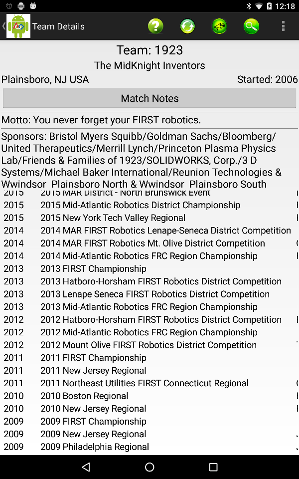 The Team Details screen shows you the team's history, including other events the team has signed up for.