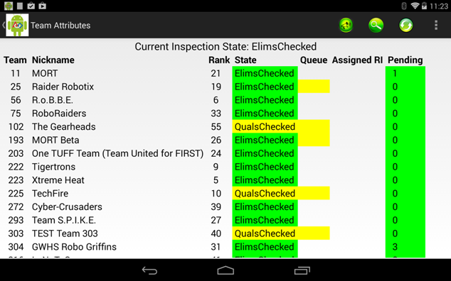 When most teams have reached a state, the LRI should advance the Target Inspection State to the next. This is done by pressing the "Change" Current Event State button in the Inspection State screen on a Tablet OR the "Next State" button on the laptop. RIs cannot change the Target State.