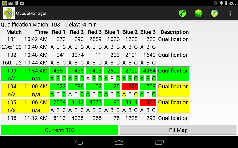 On the tablet, team number colors have the following meanings: