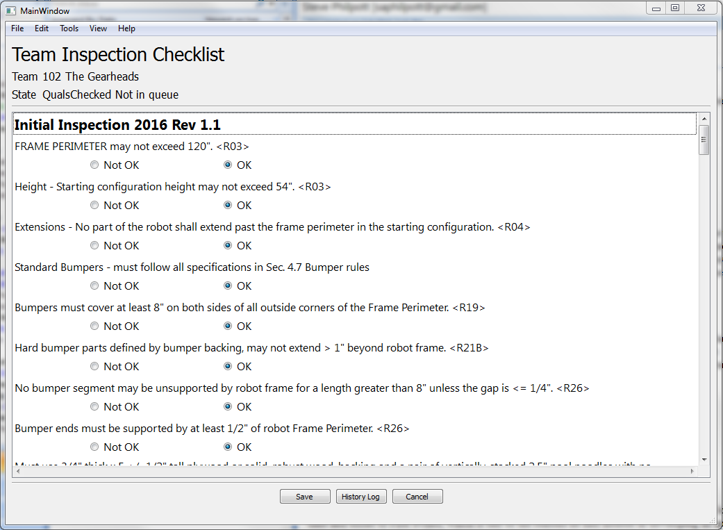 · View a Team's Inspection history from an earlier event.