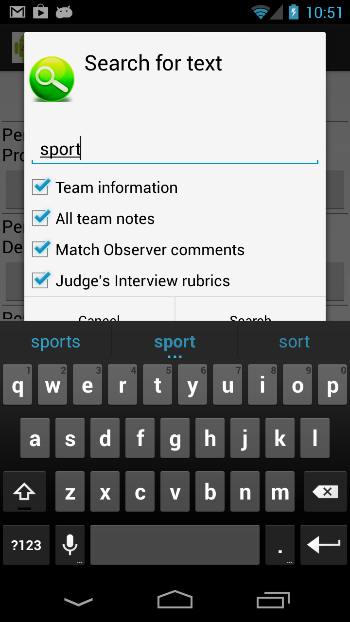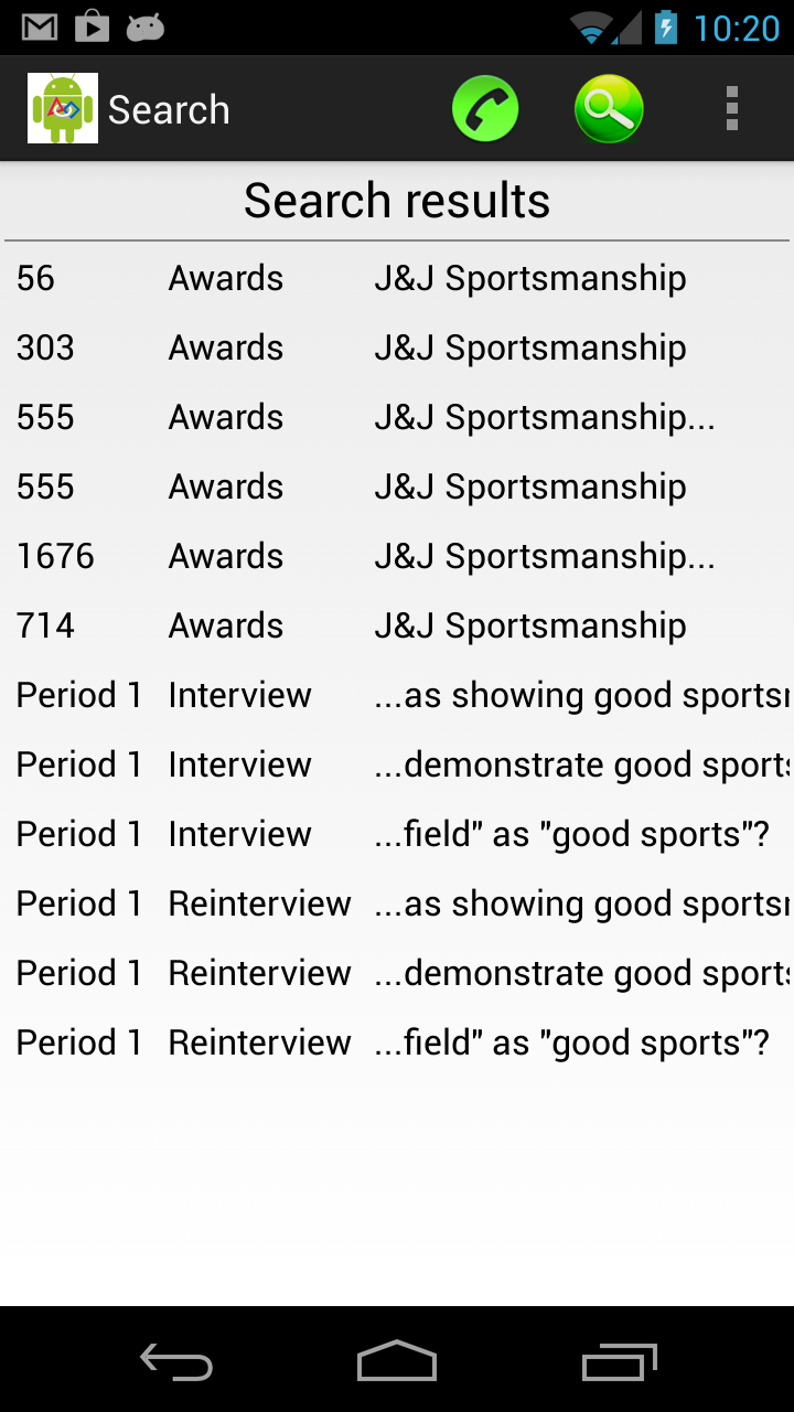 Judges in Review Mode will have an extra search option. They can search for words in Interview Rubrics for all periods. Touching a row in the results will select that period and phase, just as if that information was selected in the Period Selection menu.