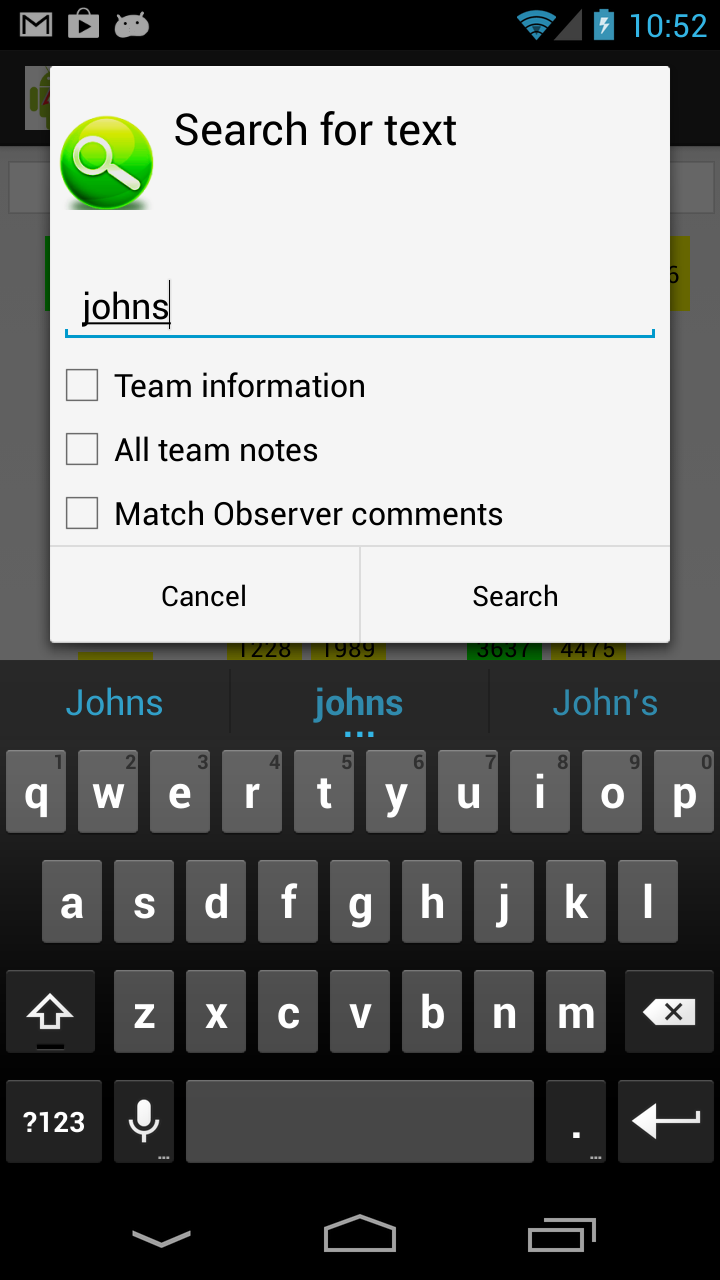 GMS allows searching notes and team details for word patterns. This allows searching (as an example) for robots that tipped over or are being sponsored by a particular company.