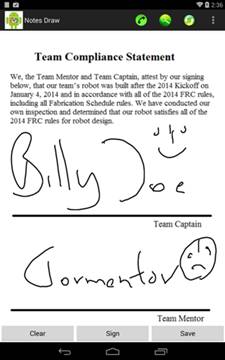 At the end of the inspections, the RI can get the team to sign the compliance statement on the tablet. This is added as a note. The name of the Mentor and Team Lead can be added to the Note description.