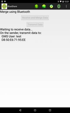 Though GMS is optimized for Android Beam, information gathered by scouts can also be merged in other ways. You could use Bluetooth or merge to a PC using a USB cable. Details are described in section Syncing.