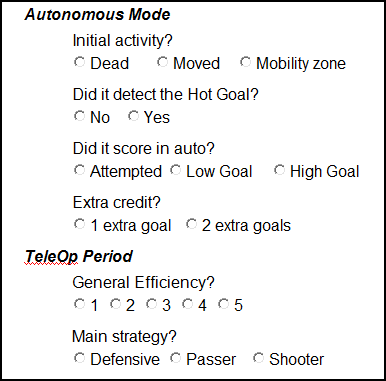 There are two separate rubrics: one for Pit scouts and another for Match scouts. The default sets provided can be easily modified or customized for each team.