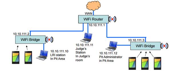 The WiFi architecture for GMS is described at http://gms.pejaver.com/WiFi.pdf. It sets up a flat LAN using multiple Access Points. One AP is a "Router" and the others are "Bridges".