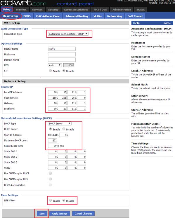 · Default Gateway: 10.10.111.1 (Press Save Settings)